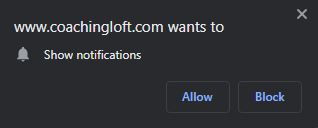 - A browser pop-up will appear—click “Allow” to enable notifications for Coaching Loft.