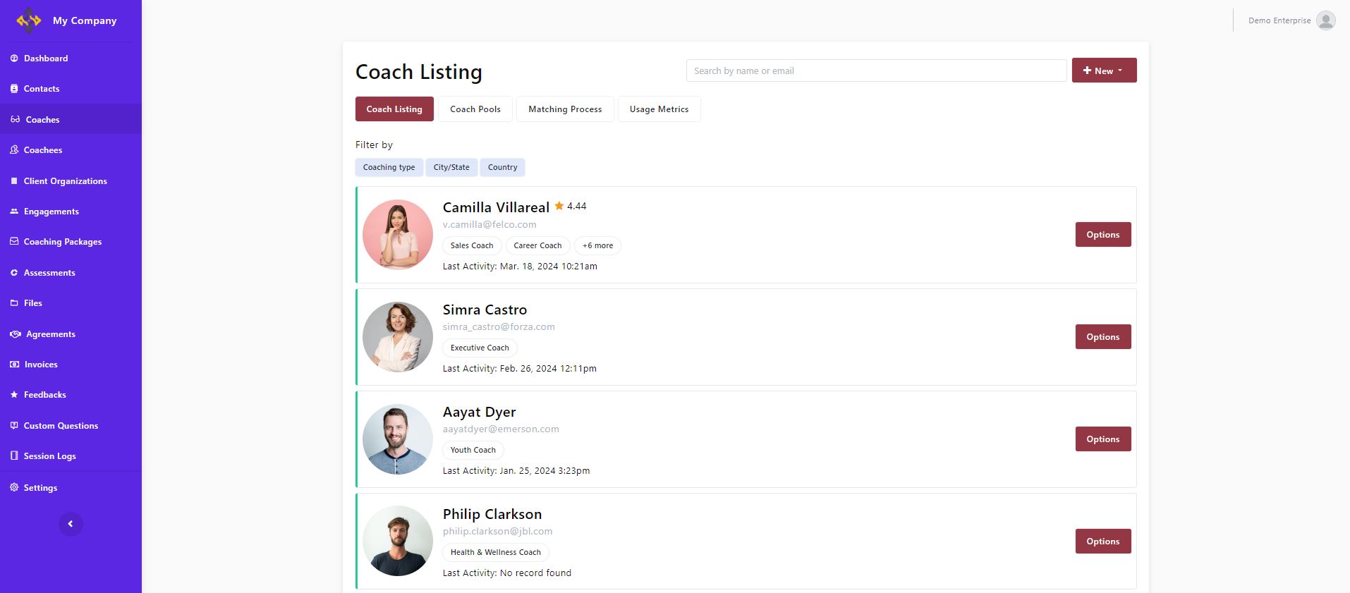 - Adding new coaches will consume available coach seats in your enterprise account. Please ensure you have a vacant seat before adding a coach.