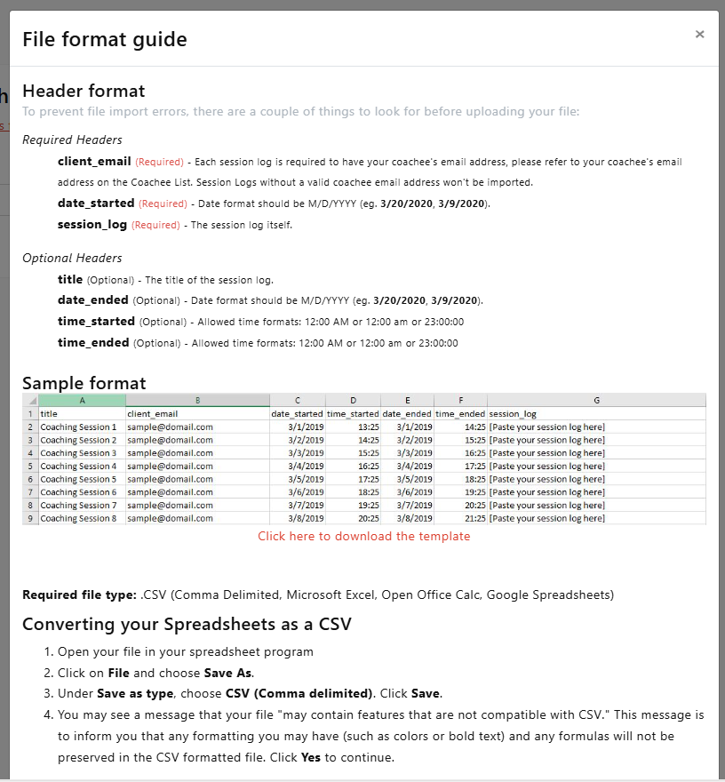 If a coaching session took place outside Coaching Loft, you can import it into the platform to keep all your data in one place. Completed sessions can be imported one by one or in bulk.