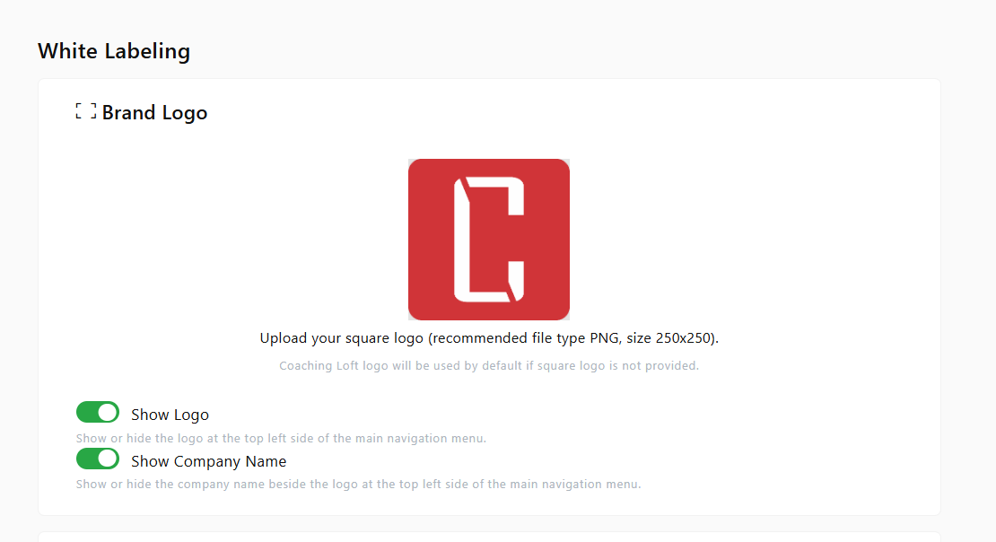 The White Labeling feature allows Independent Coaches with a Master Membership to customize the look and feel of the Coaching Loft platform to match their personal or company brand.