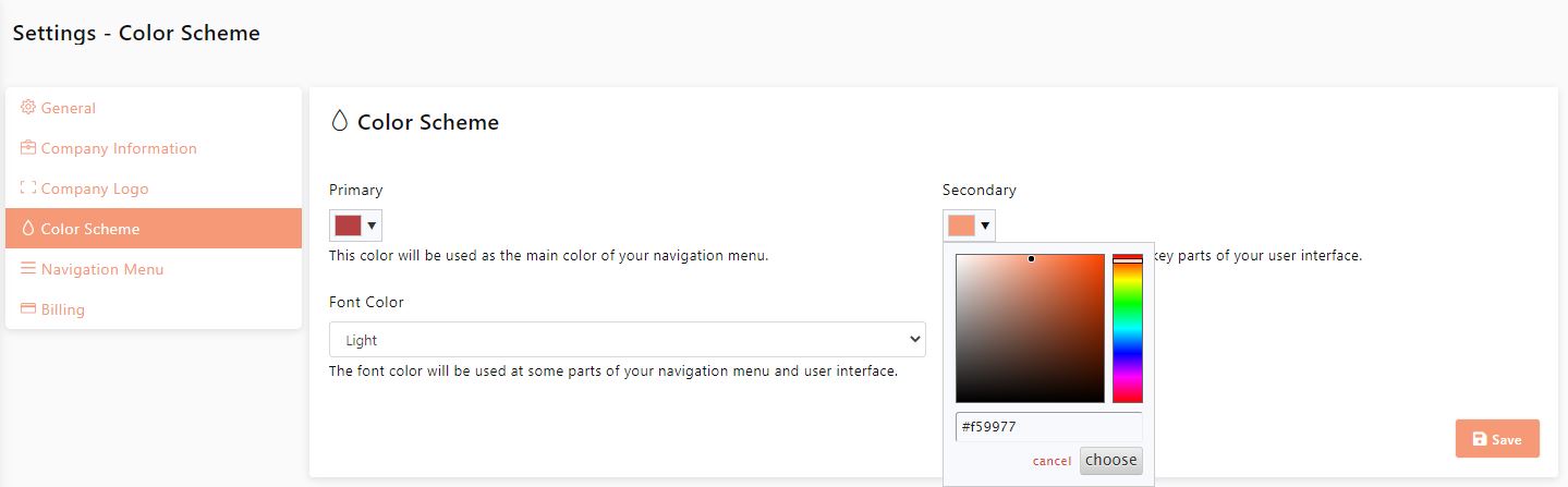In your Enterprise account under Settings, click on Color Scheme.Update the Primary and Secondary colors based on your brand guidlines.